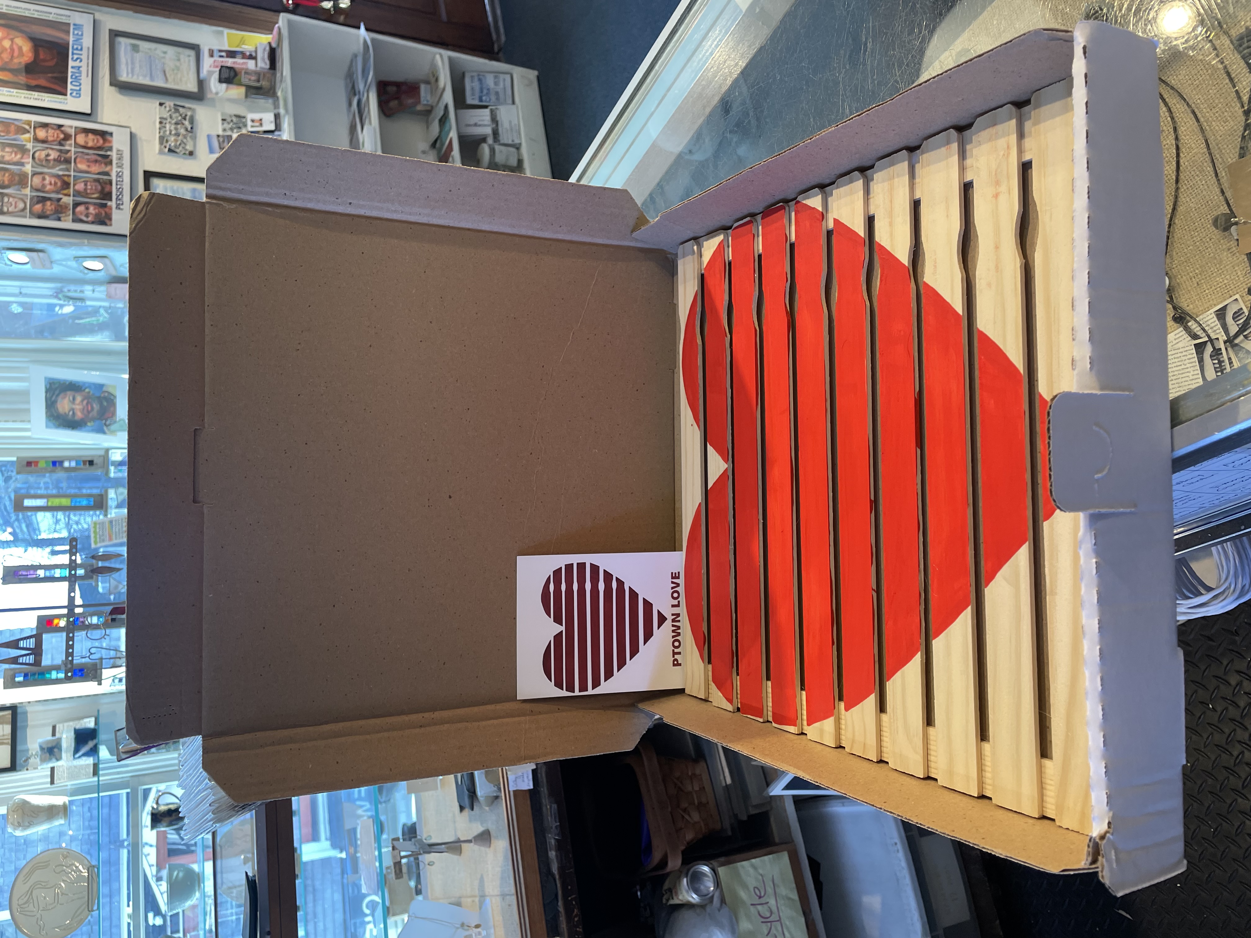 The symbol of unity and thanks to essential workers during Covid 2020 on the Outer Cape has been these hearts on large pallets and our version, the paint stirrer pallet. If you have been to Ptown this year, these signs are in over 200 businesses and in over 2000 homes (Ptown and beyond). Hang one on your door, in a window, or wherever you want to send the message we are all in this together.